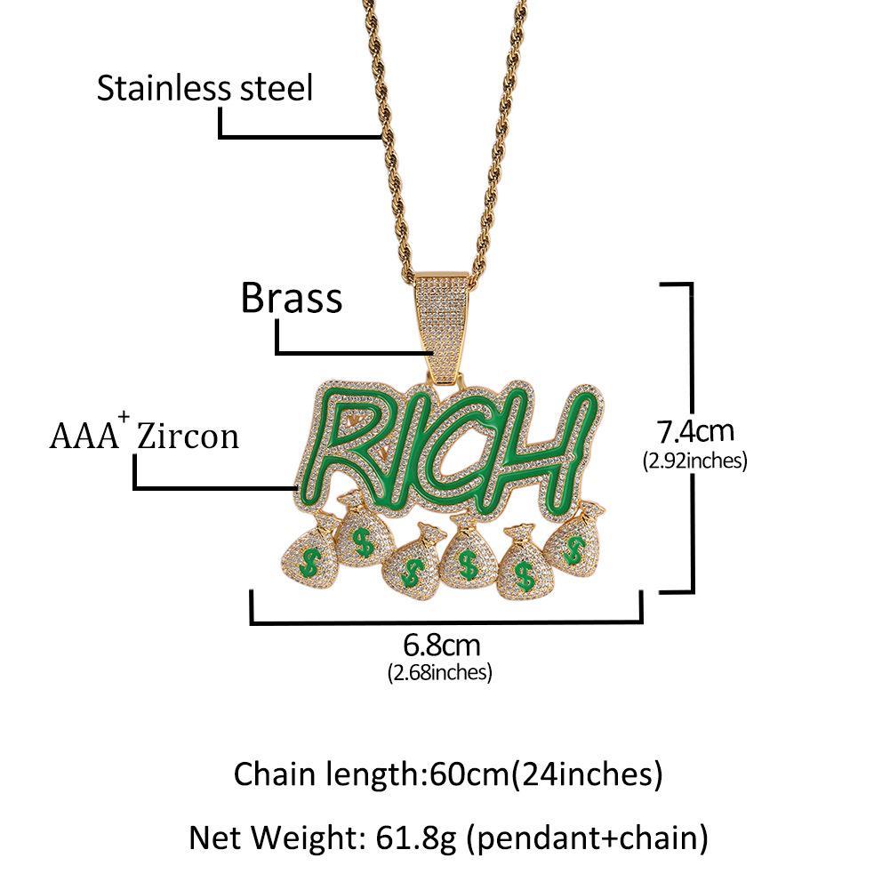 18K Gold Vacuum Plated Copper with 5A+ Sri Lanka Zircon Rich Money bag Design Pendant With Necklace Miami Italy Mexico & Micro Inspired for Women & Men Luxury Jewelry,Daily Wear,Casual Fashion,Gift Idea,Chicano,Classic,Hip Hop,Simple,Sporty Style