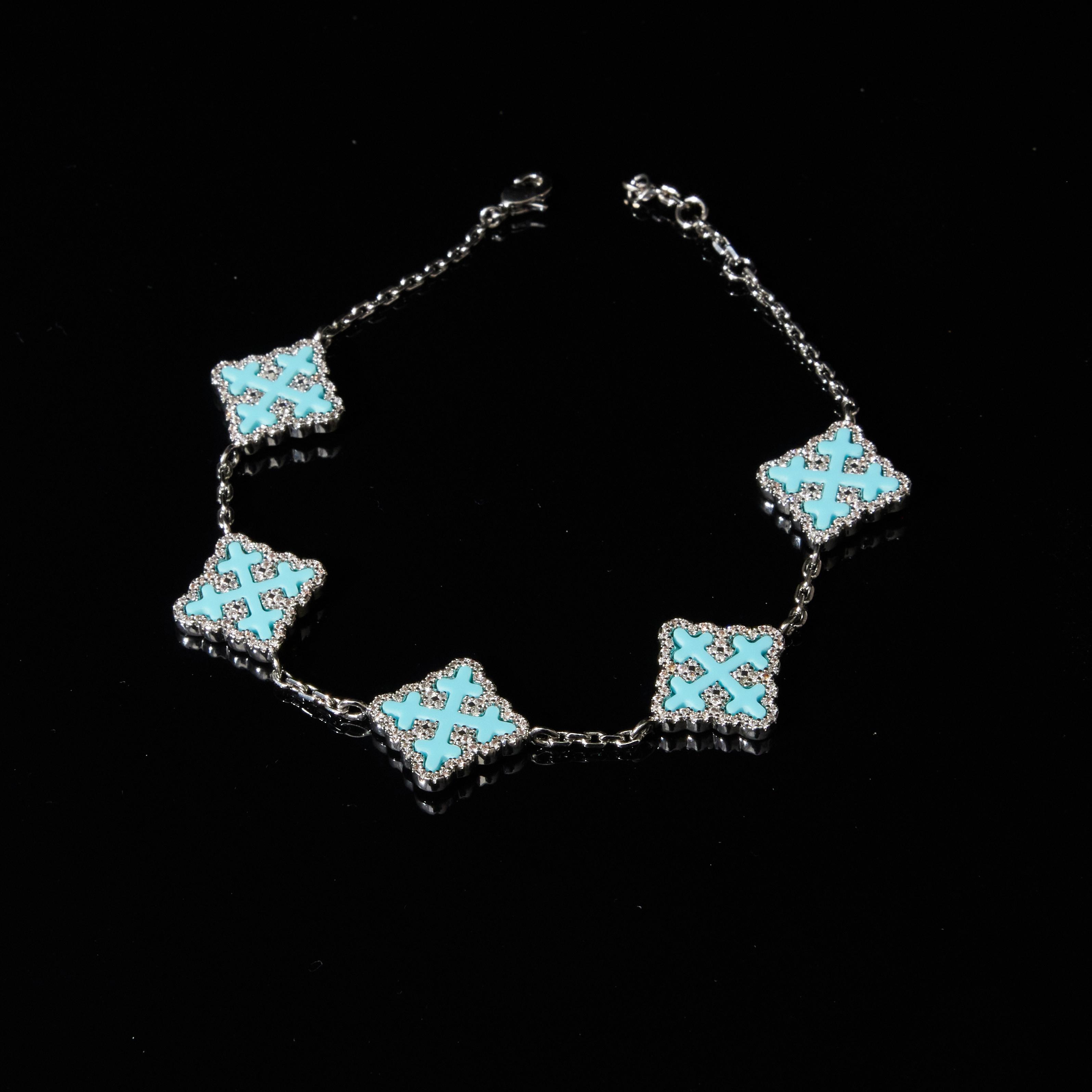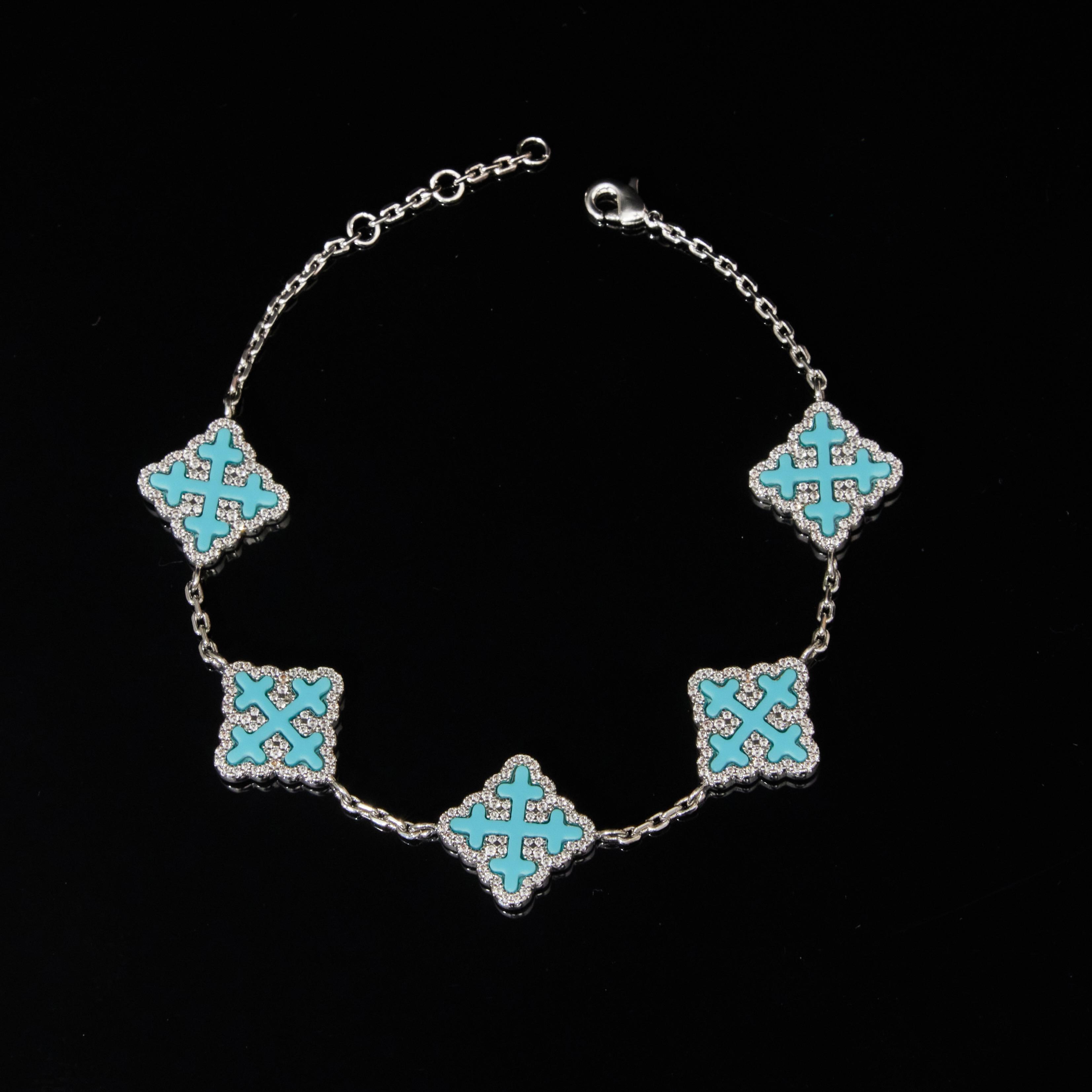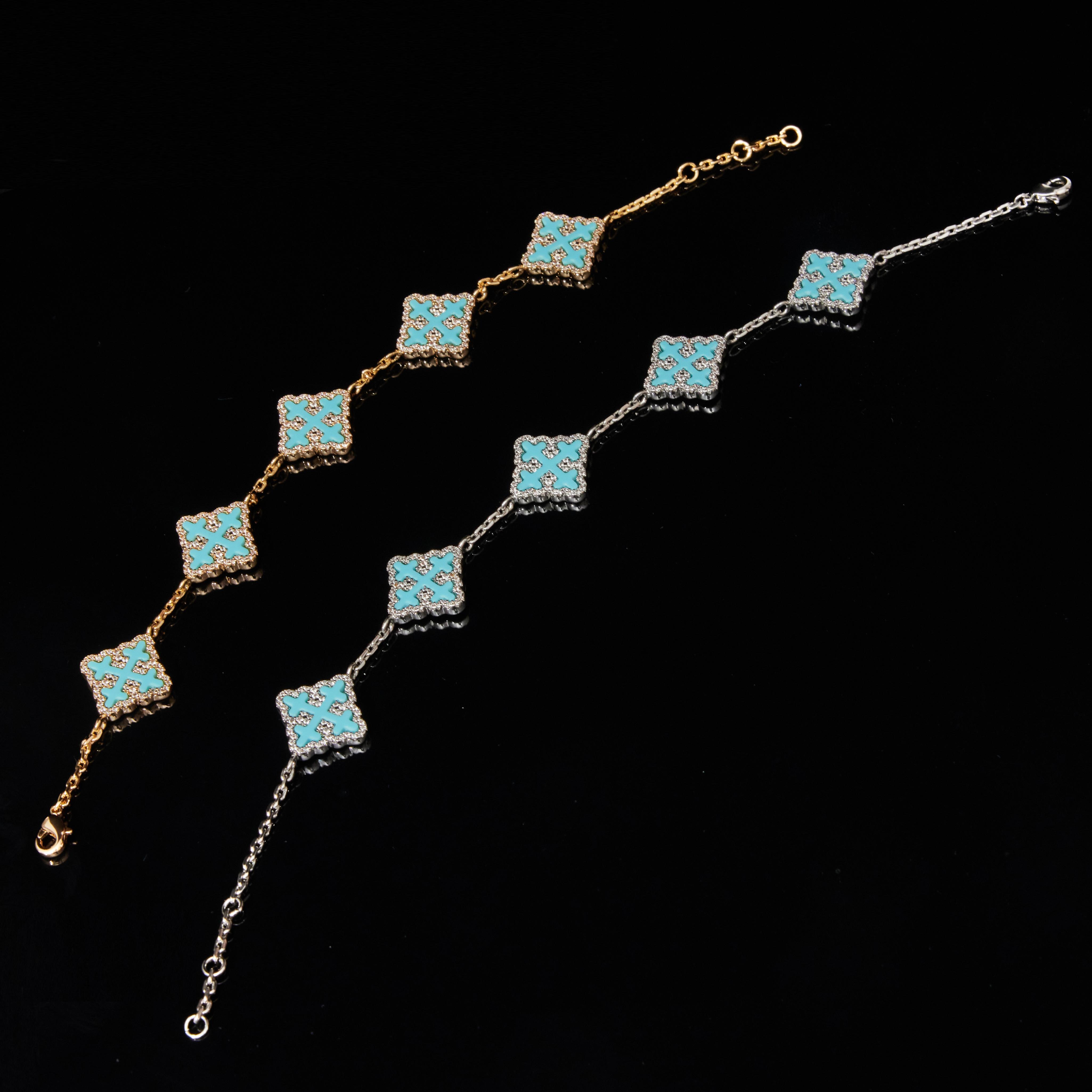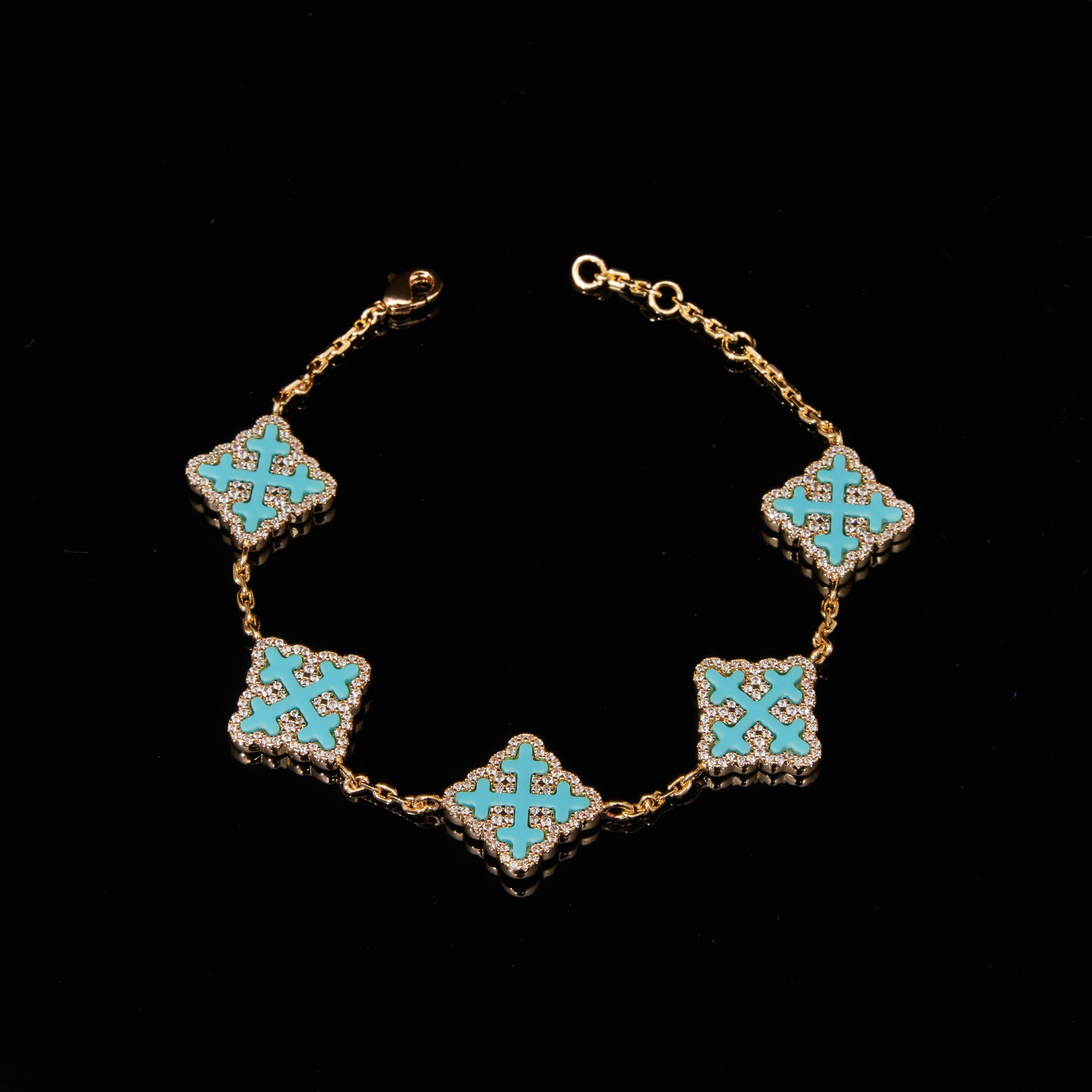 18K Gold Vacuum Plated Copper with 5A+ Sri Lanka Zircon Synthetic Turquoise Clover Bracelet Miami Italy Mexico & Micro Inspired for Women & Men Luxury Jewelry,Daily Wear,Casual Fashion,Gift Idea,Chicano,Classic,Hip Hop,Simple,Sporty Style