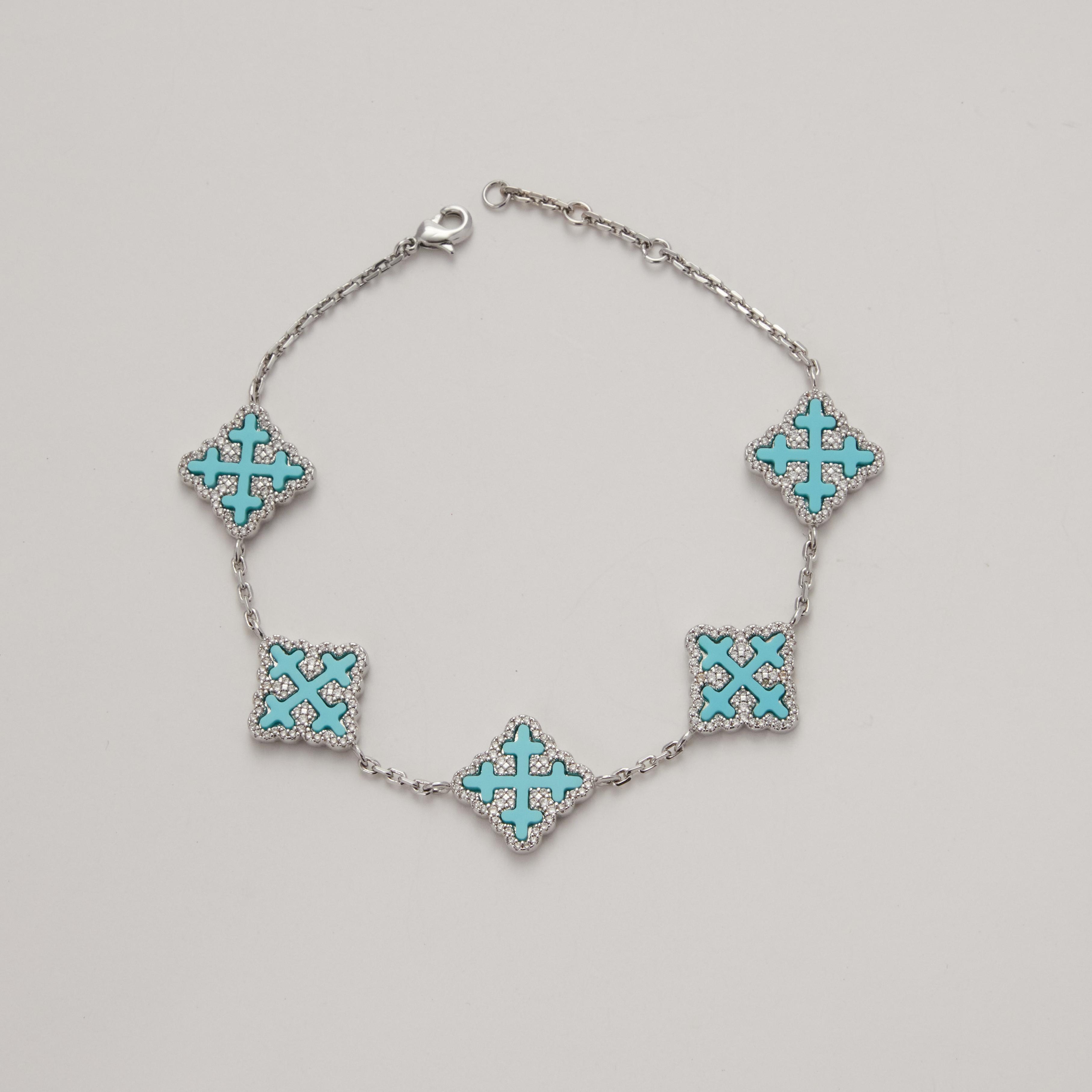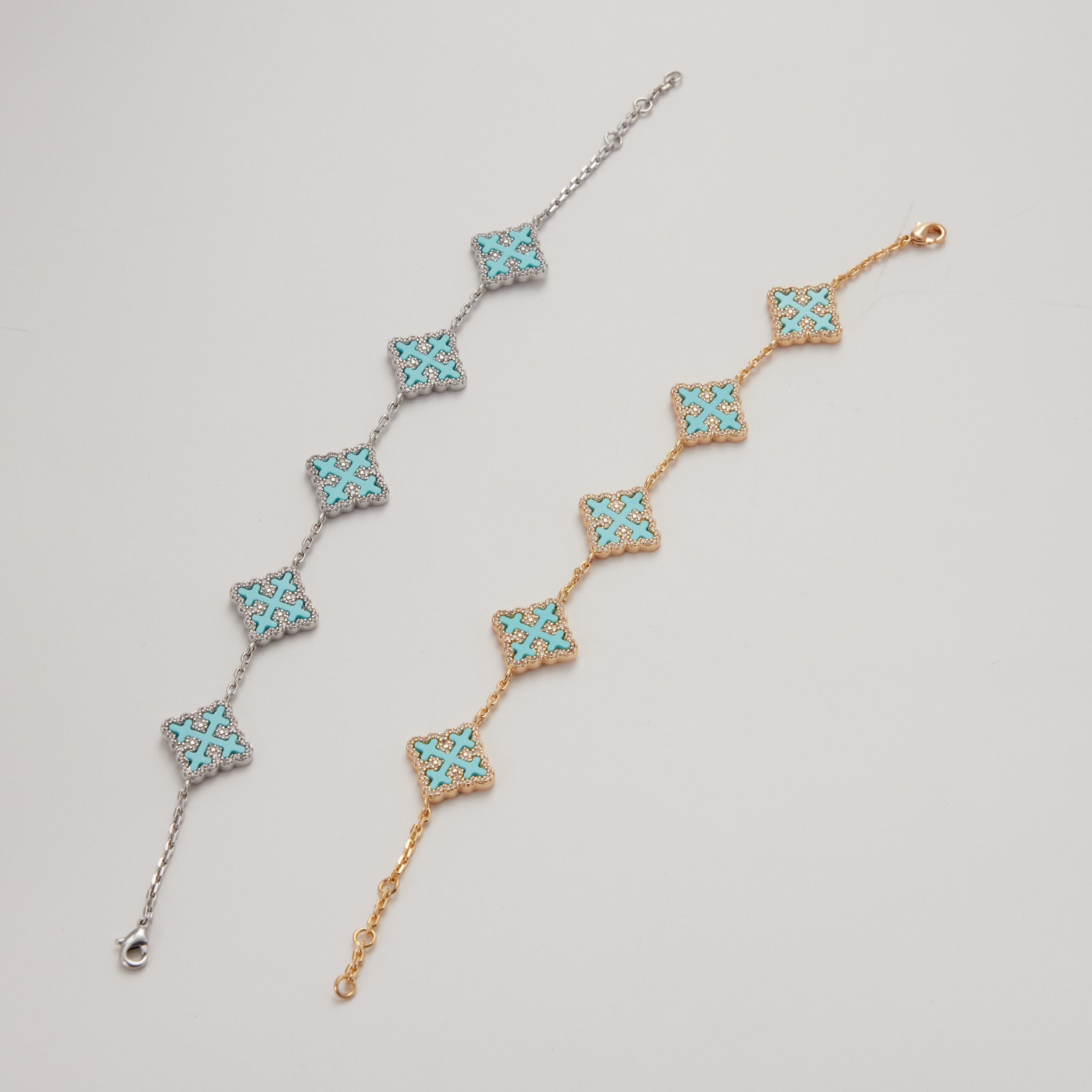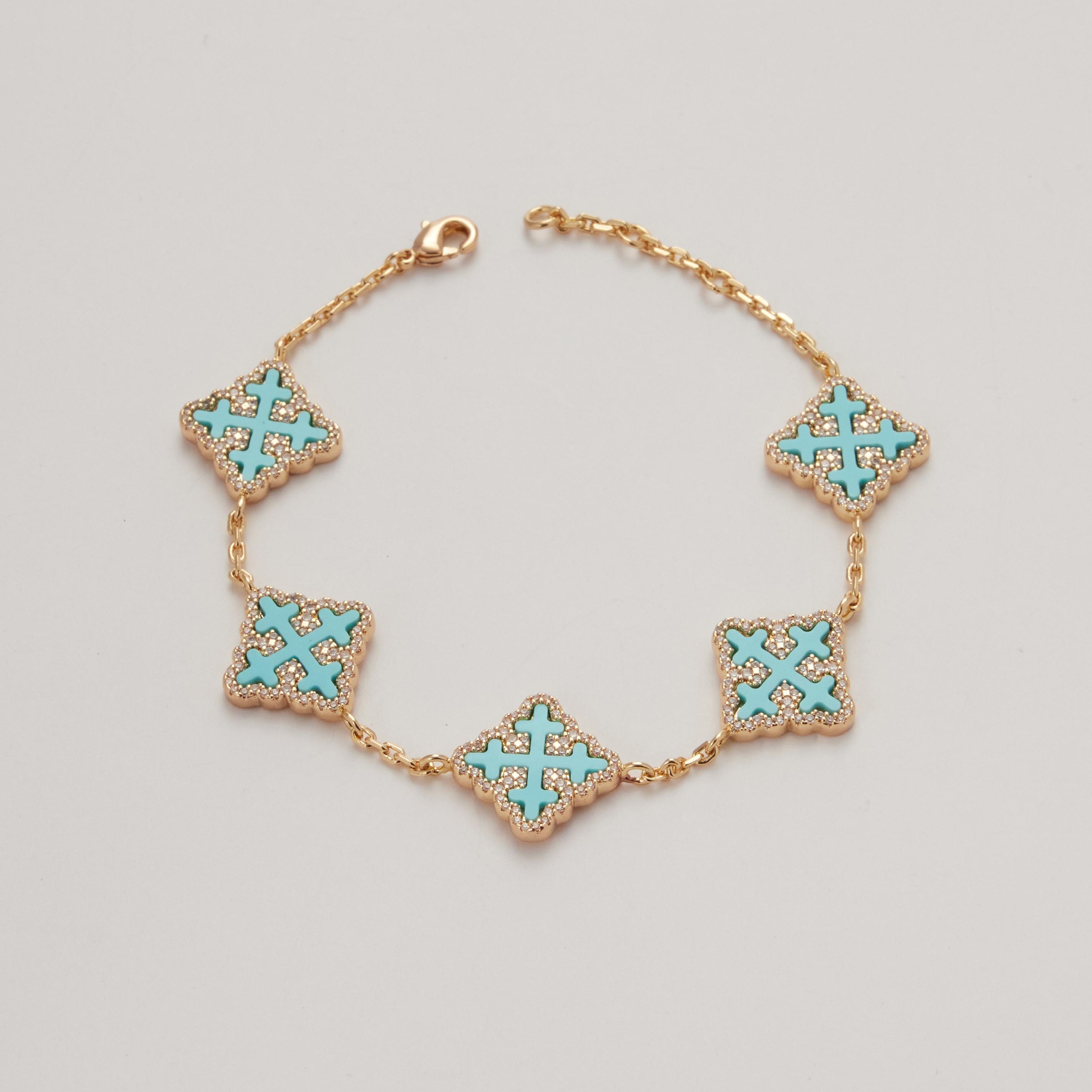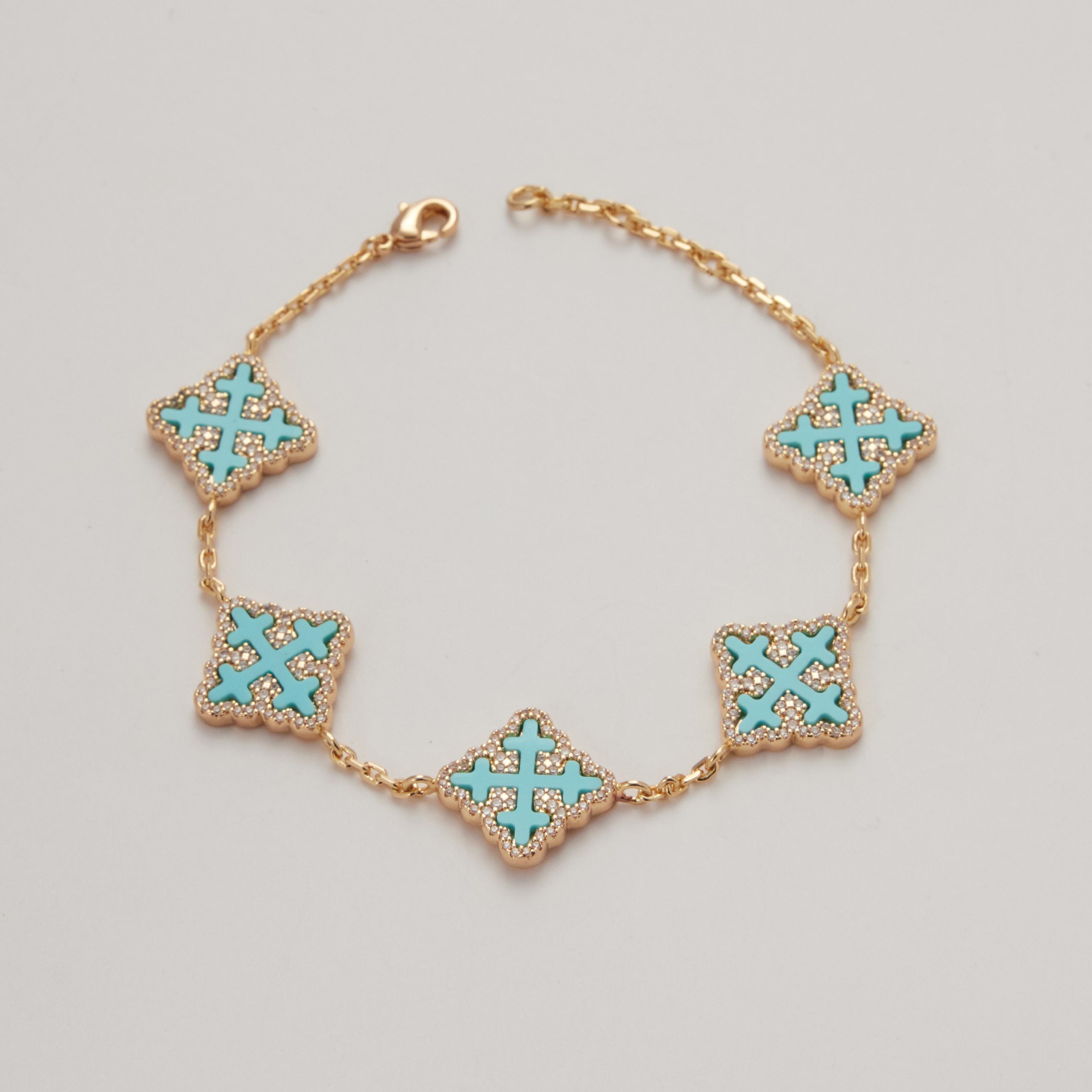 18K Gold Vacuum Plated Copper with 5A+ Sri Lanka Zircon Turquoise Synthetic Clover Bracelet Miami Italy Mexico & Micro Inspired for Women & Men Luxury Jewelry,Daily Wear,Casual Fashion,Gift Idea,Chicano,Classic,Hip Hop,Simple,Sporty Style