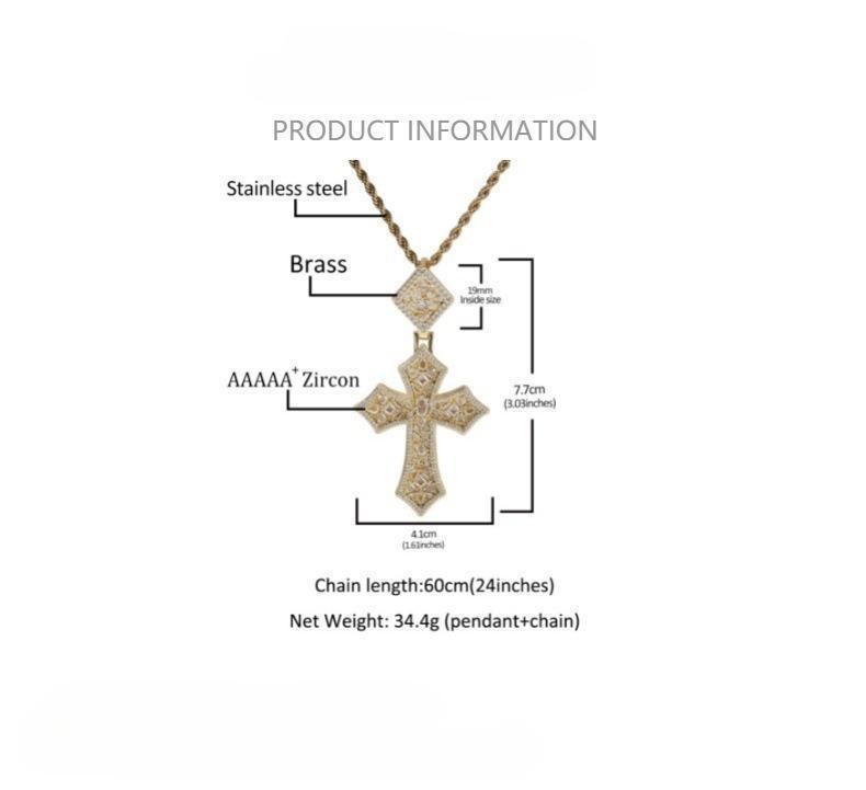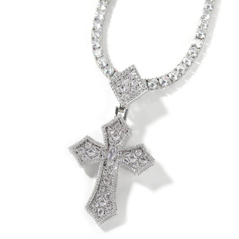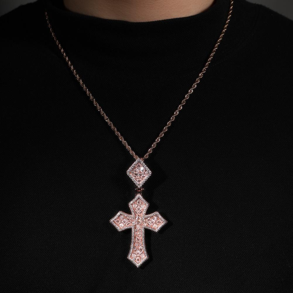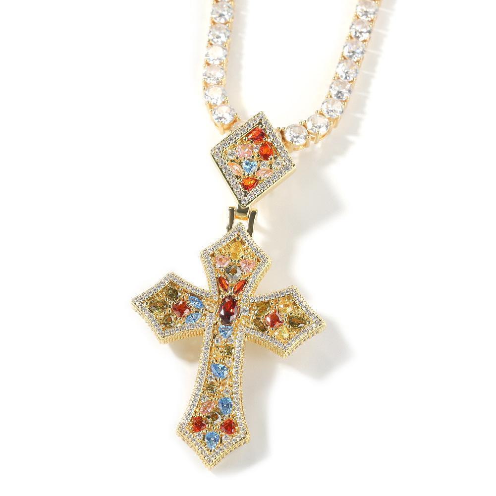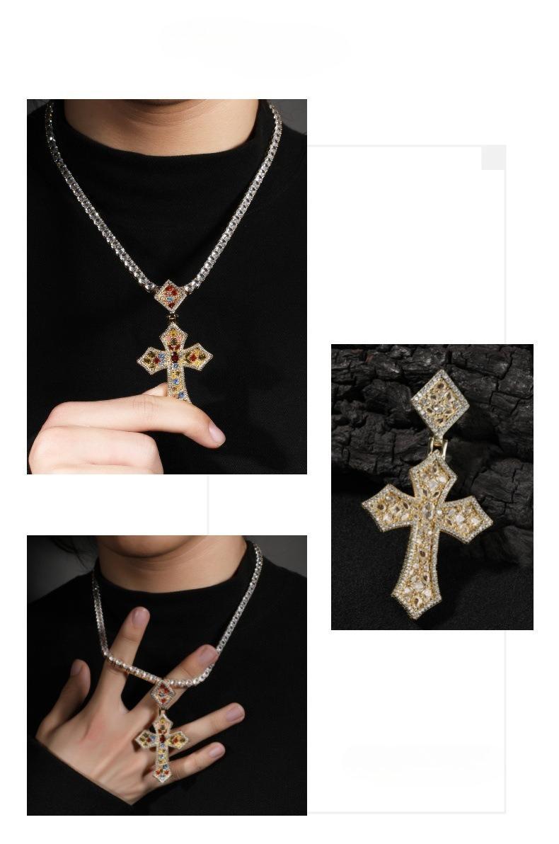 [ICE HUE] Oval-Cut Norwegian Cubic Zirconia Bling Rhomboid Gothic Cross Pendant Necklace, Jewelry Chain for Men Women
