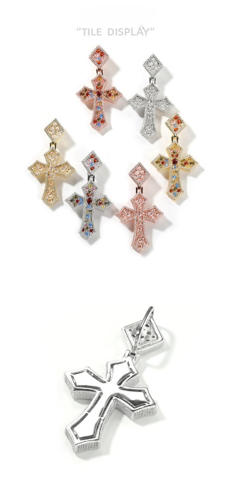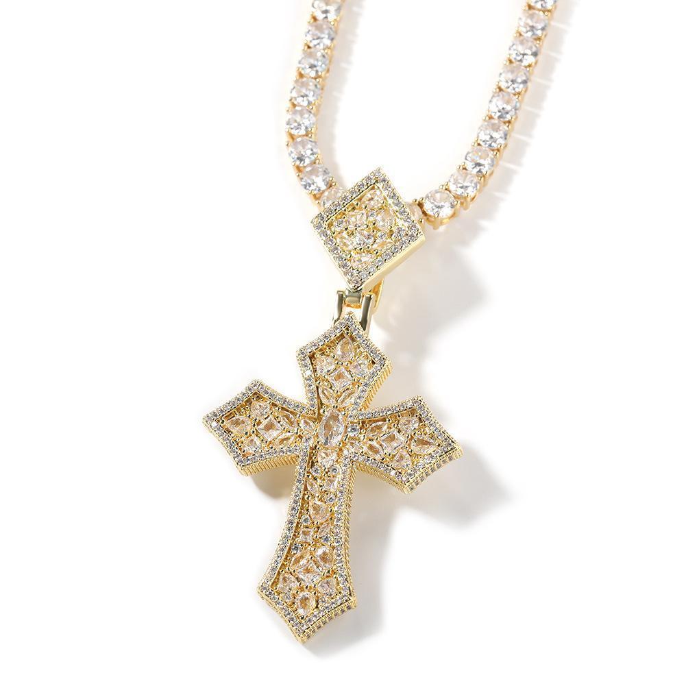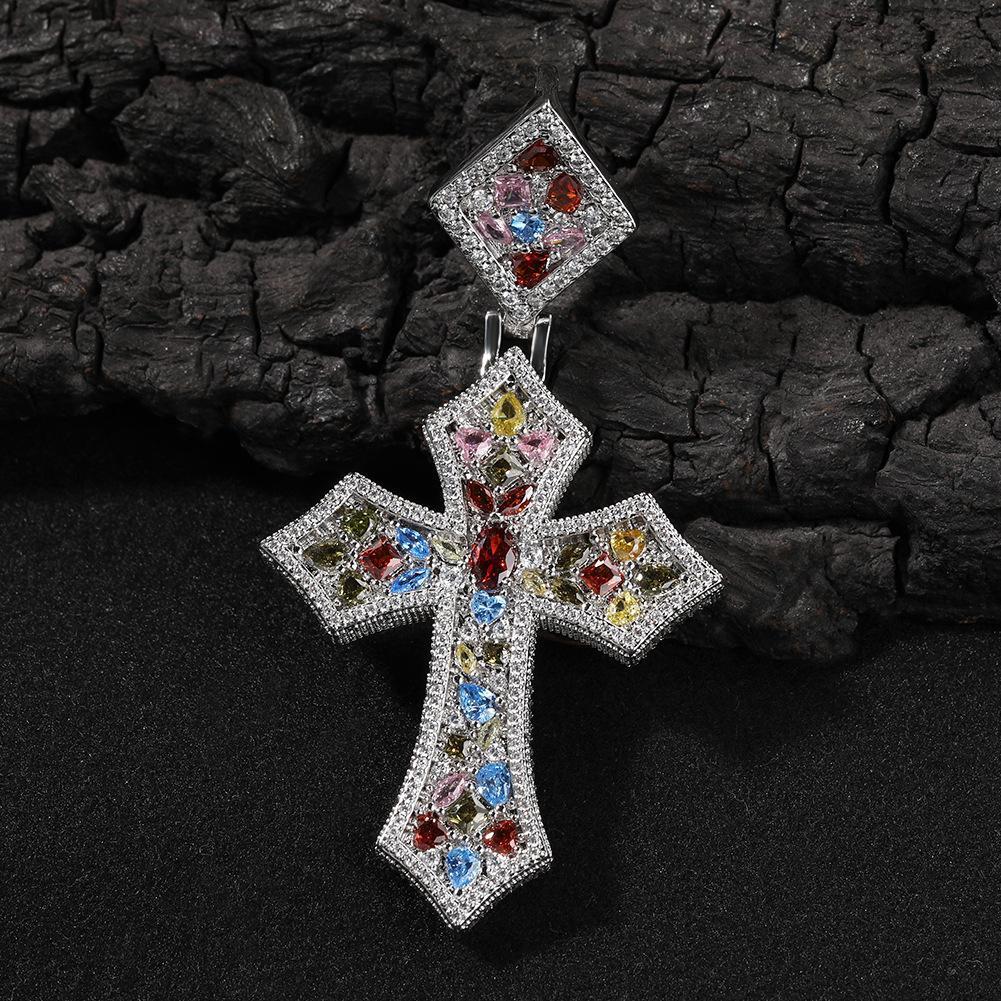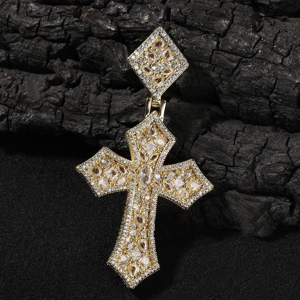 [ICE HUE] Oval-Cut Norwegian Cubic Zirconia Bling Rhomboid Gothic Cross Pendant Necklace, Jewelry Chain for Men Women